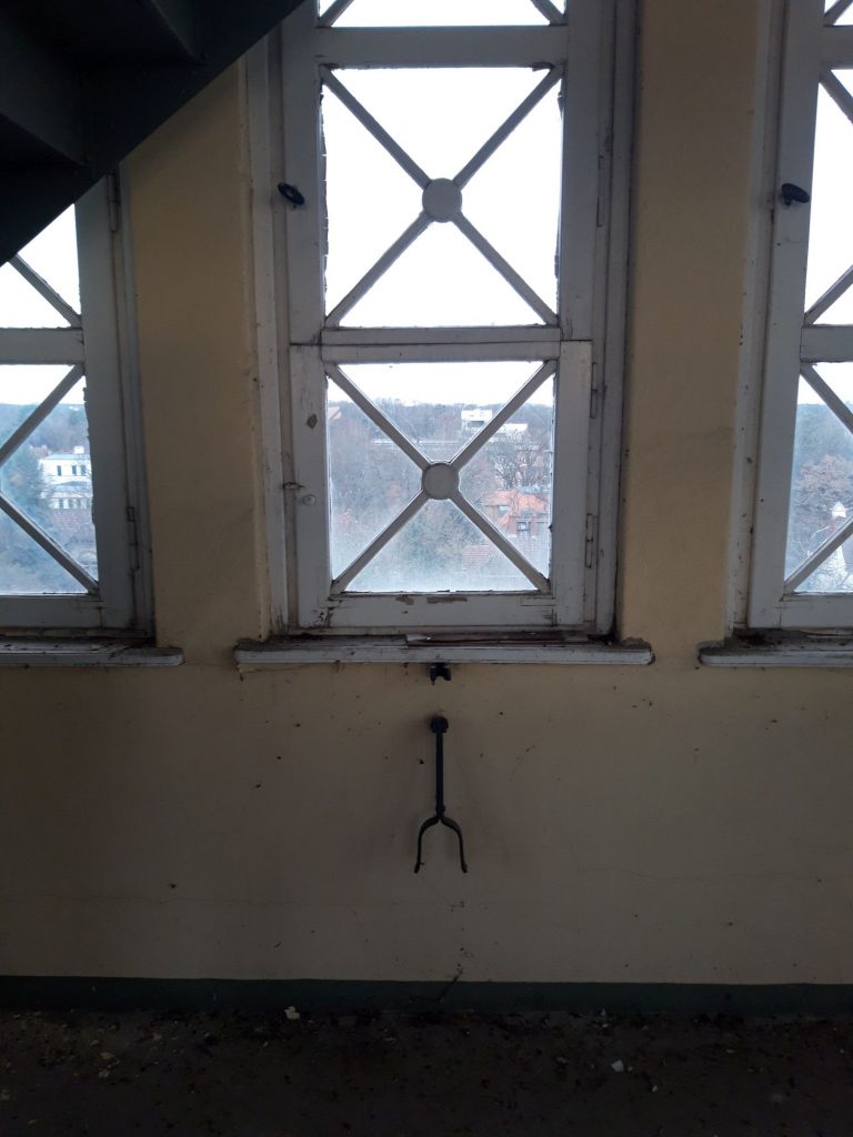 Allerdings ist dieser Kasten nur von außen zugänglich und hat nach innen keine Öffnung. Somit bleibt das Rätsel der Vogelkacke offen, Herr Atci vermutet, dass das mit einem Fenster zu tun haben könnte, das einmal für lange Zeit kaputt war. Dann wären Tauben in den Turm gekommen.