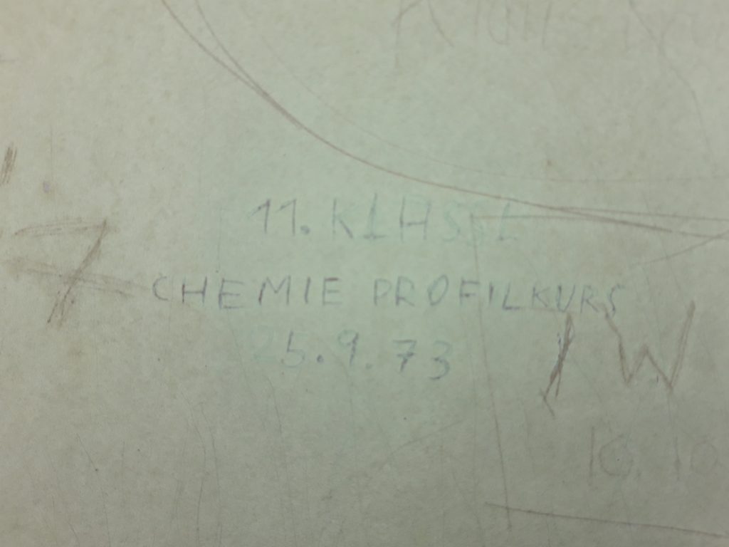 Und das hier noch zur Beantwortung der Frage, wer denn auf den Turm durfte: Niemand, mit der Ausnahme von ein paar sehr glücklichen Leuten, wie 1974 zum Beispiel ein Chemiekurs. Aber das gönnen wir denen, die hatten es ja in der Schule mit ihrer Fächerwahl auch nicht gut getroffen. Wofür die Abkürzung wohl steht?