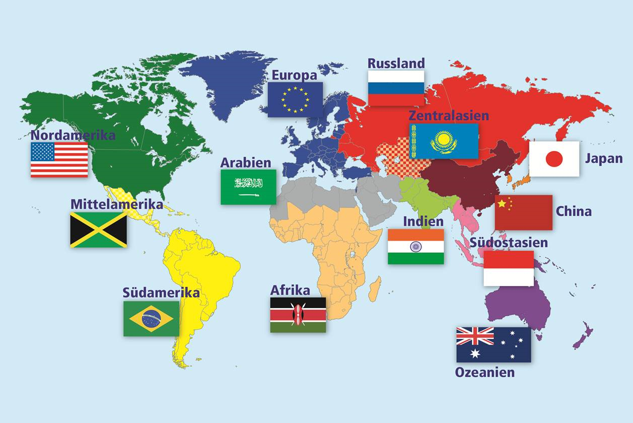 Wobei die ersten vier Rollen freiwillig zu Beginn besetzt und die letzten drei später in der, per Los gezogene, Gruppe aufgeteilt werden. Was sind diese Gruppen? Die Weltregionen natürlich.